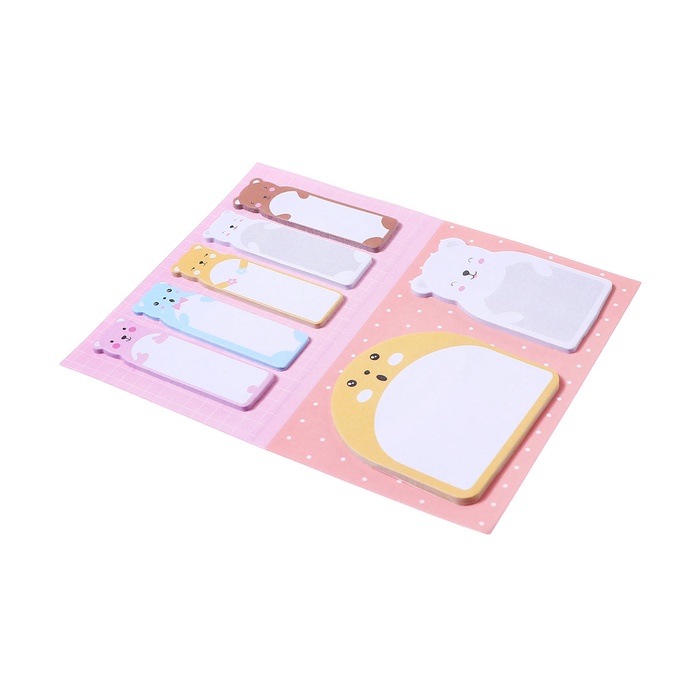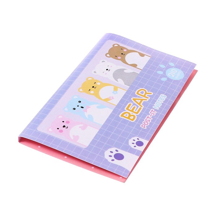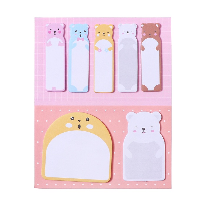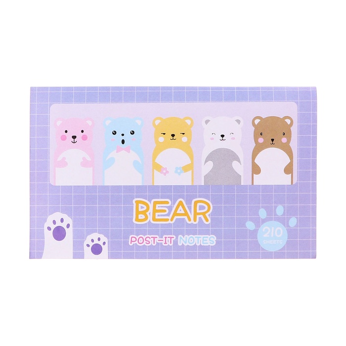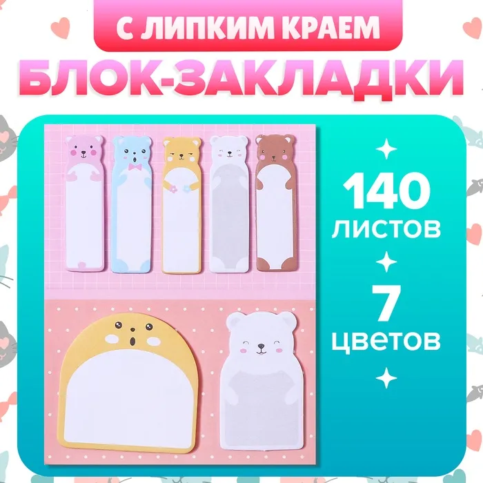 Блок-закладки с липким краем из бумаги, 20л*7 цветов, 57*17мм, 60*60 мм, 57*36мм, Мишки — Характеристики
