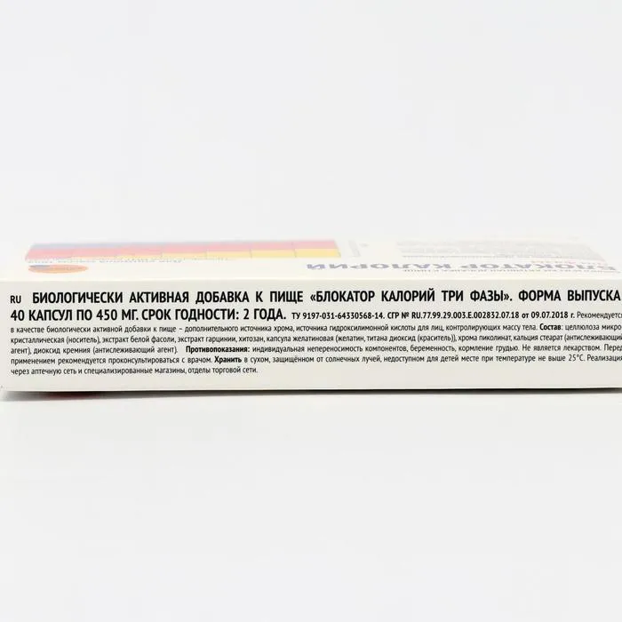 БЛОКАТОР КАЛОРИЙ три фазы - легкий способ контролировать массу тела. Нет необходимости отказывать себе в еде, препарат сам контролирует усвоение калорий.