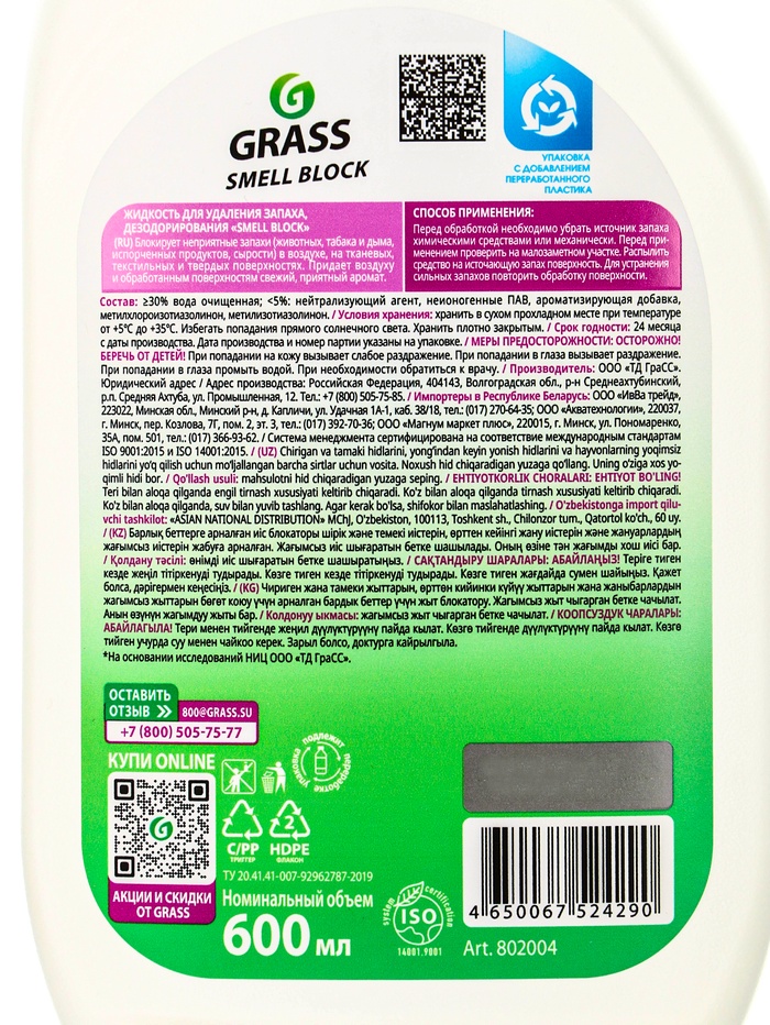 Форма выпуска: бутыль с распылителем 600мл.