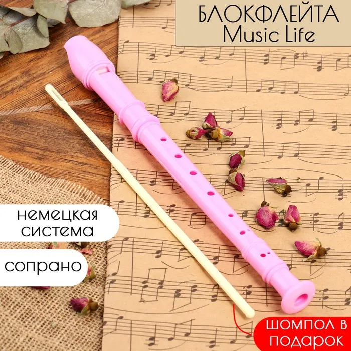 Блокфлейта Music Life, розовая, немецкая система, сопрано, 30 см — Характеристики