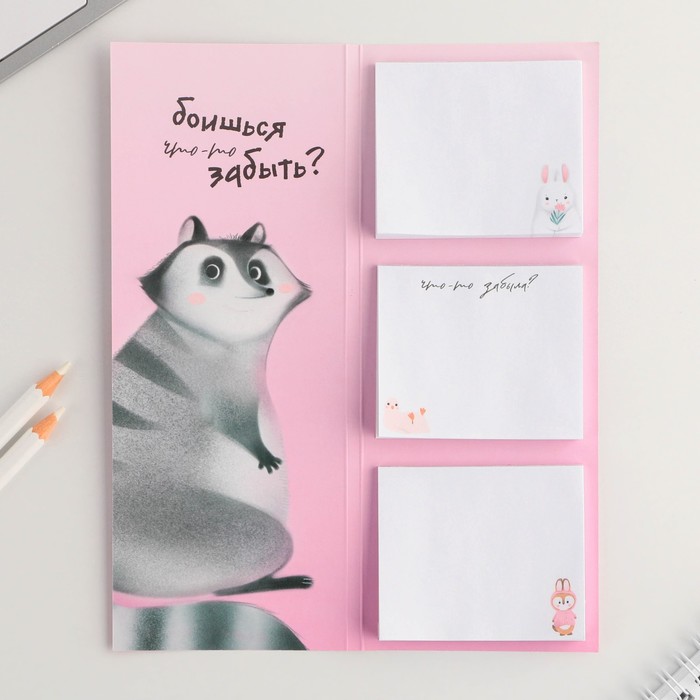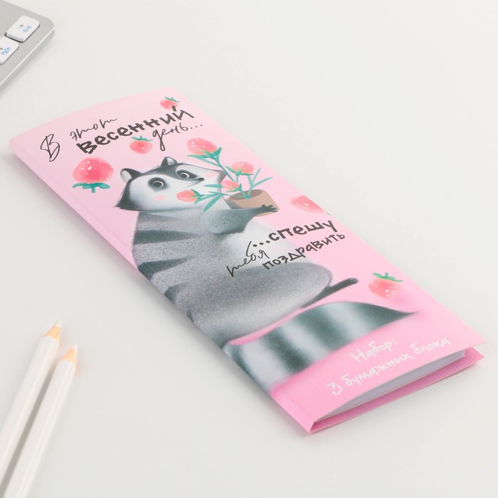Блоки бумаги с отрывными листами, 30 л в открытке «8 марта: Енот» — Характеристики