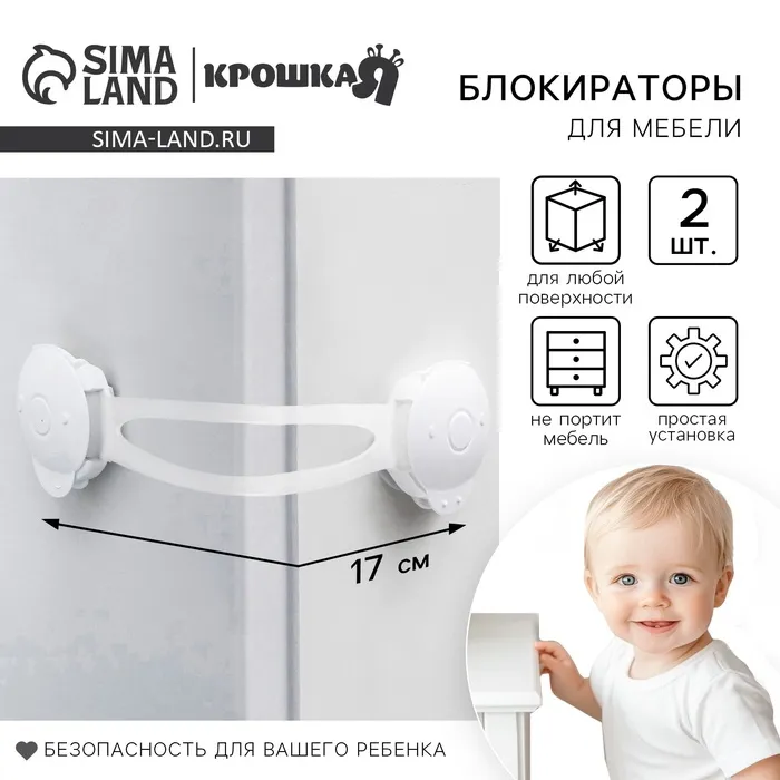 Блокиратор для дверей и ящиков Крошка Я, универсальные, 17 см, 2 шт., белый/прозрачный — Характеристики