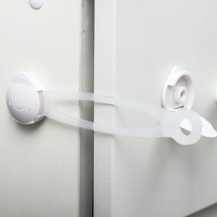 Специальное приспособление сделает для малютки недоступными выдвижные ящики комодов, шкафов, а также крышку унитаза, дверки холодильника, морозильной камеры и микроволновой печи. Благодаря гибкому материалу блокиратор может использоваться на углах и неровных поверхностях. Подходит для стеклянных, ламинированных, пластмассовых и металлических предметов. Изделие состоит из трёх частей: двух дисков-крепежей и гибкого элемента. Легко демонтируется.