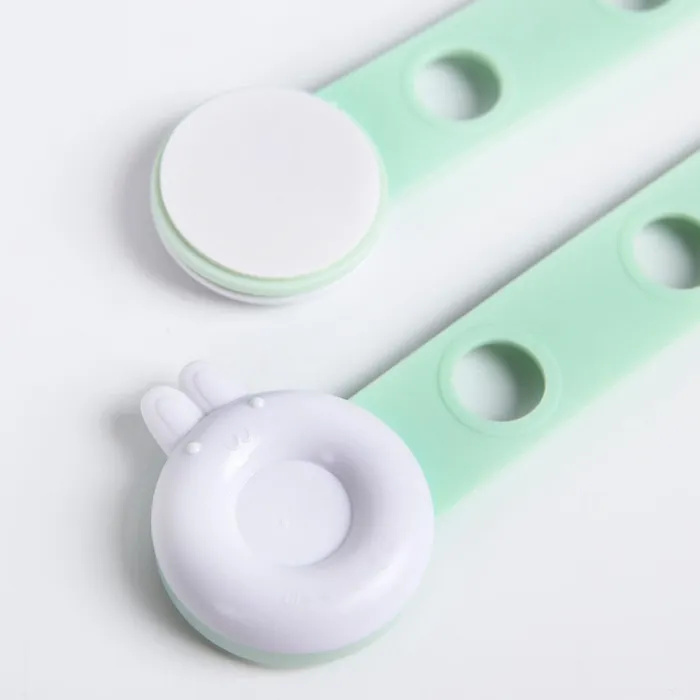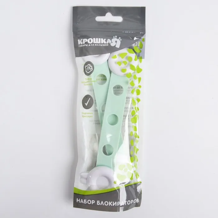 Специальное приспособление сделает для малютки недоступными выдвижные ящики комодов, шкафов, а также крышку унитаза, дверки холодильника, морозильной камеры и микроволновой печи. Благодаря гибкому материалу блокиратор может использоваться на углах и неровных поверхностях. Подходит для стеклянных, ламинированных, пластмассовых и металлических предметов. Изделие состоит из трёх частей: двух дисков-крепежей и гибкого элемента. Легко демонтируется.