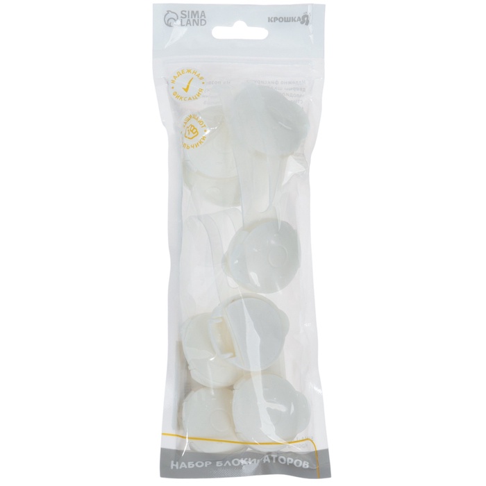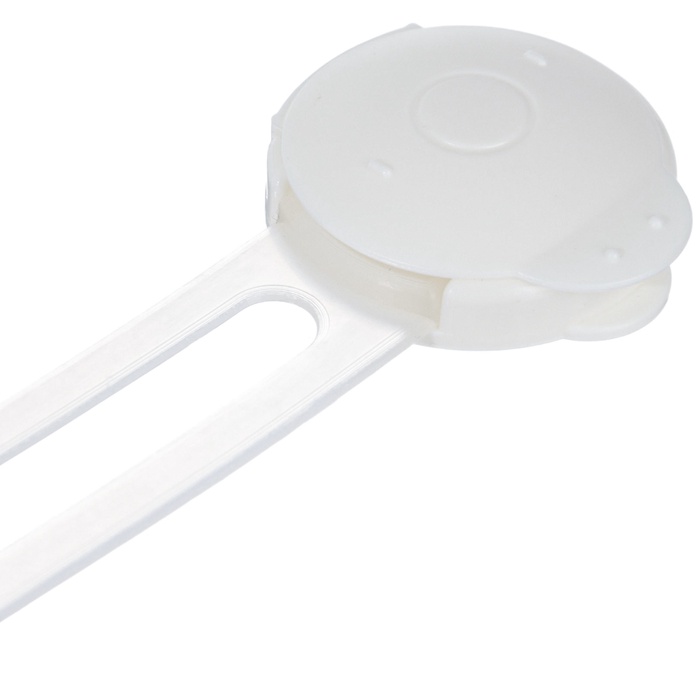 Специальное приспособление сделает для малютки недоступными выдвижные ящики комодов, шкафов, а также крышку унитаза, дверки холодильника, морозильной камеры и микроволновой печи. Благодаря гибкому материалу блокиратор может использоваться на углах и неровных поверхностях. Подходит для стеклянных, ламинированных, пластмассовых и металлических предметов. Изделие состоит из трёх частей: двух дисков-крепежей и гибкого элемента. Легко демонтируется.
