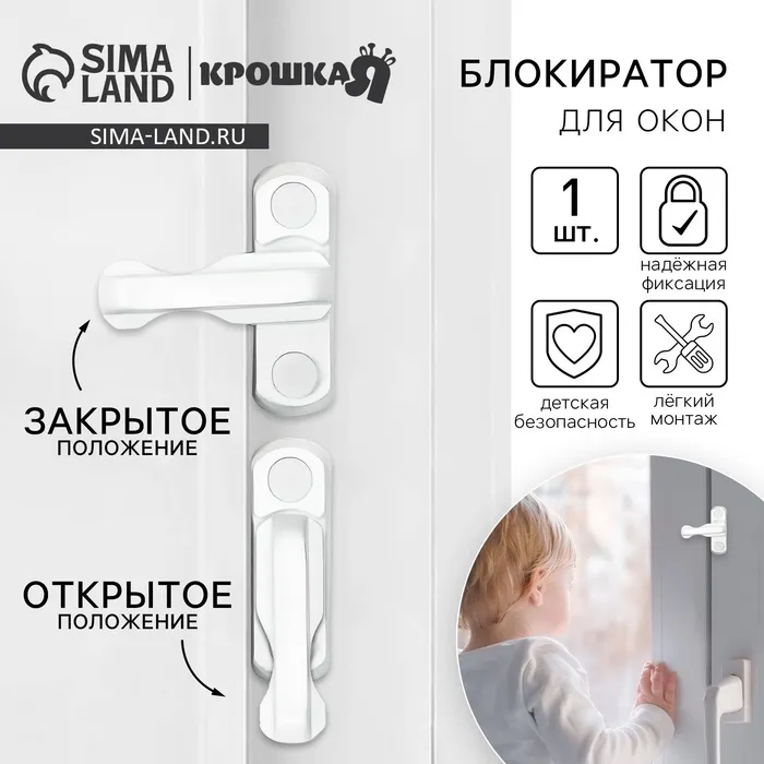 Блокиратор для окон и раздвижных дверей, 7 см, цвет белый, Крошка Я