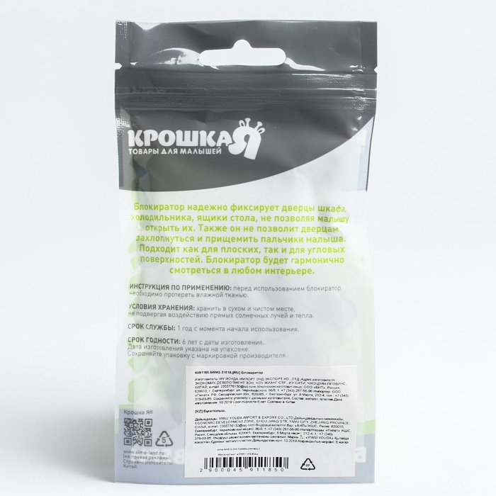 Блокиратор для окон и раздвижных дверей, 7 см, цвет белый, Крошка Я — Характеристики