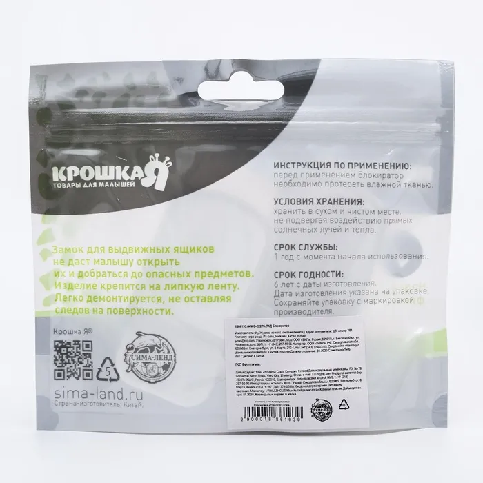 Блокиратор для выдвижных ящиков, белый, пластик, Крошка Я — Характеристики