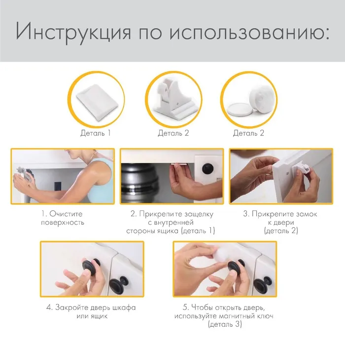 Блокиратор на магните для выдвижных ящиков Крошка Я, 2 шт., белый — Характеристики