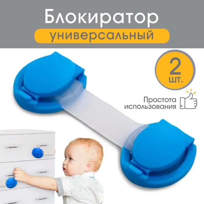 Блокираторы для дверей и ящиков, универсальные, 10 см, 2 шт., голубой, Крошка Я — Характеристики