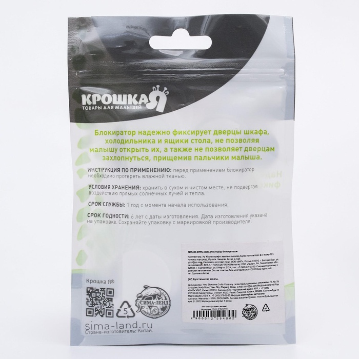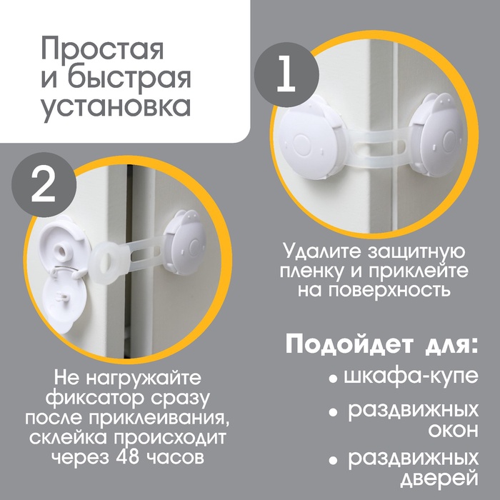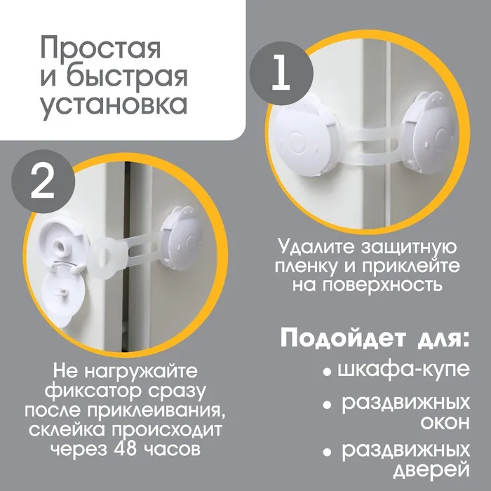 Блокираторы для дверей и ящиков, универсальные, 17 см, 2 шт., белый, Крошка Я — Характеристики