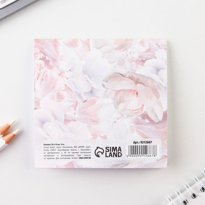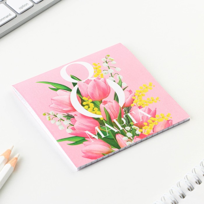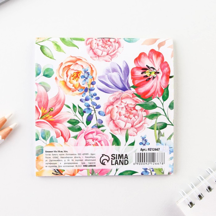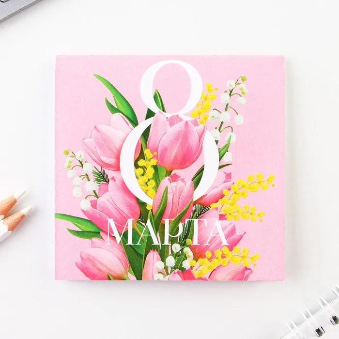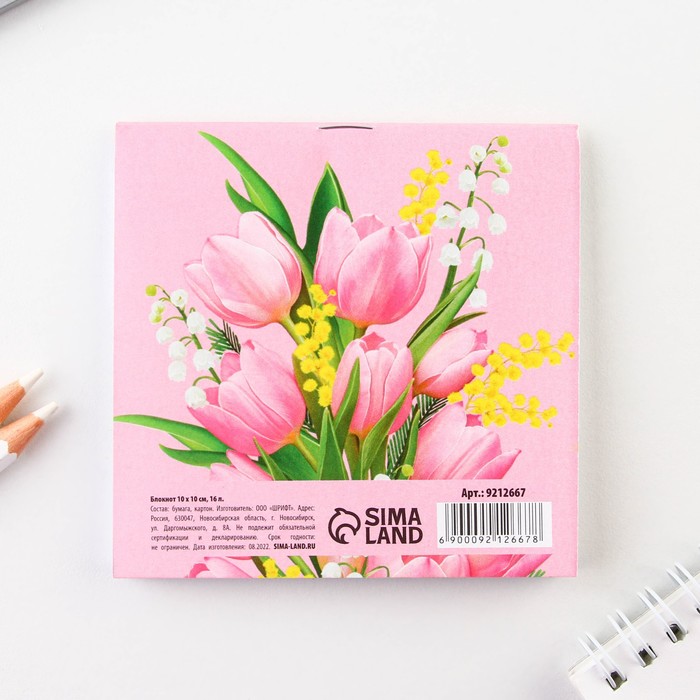 Блокнот 10х10 см, 16 л «8 Марта. Цветочный» МИКС — Характеристики