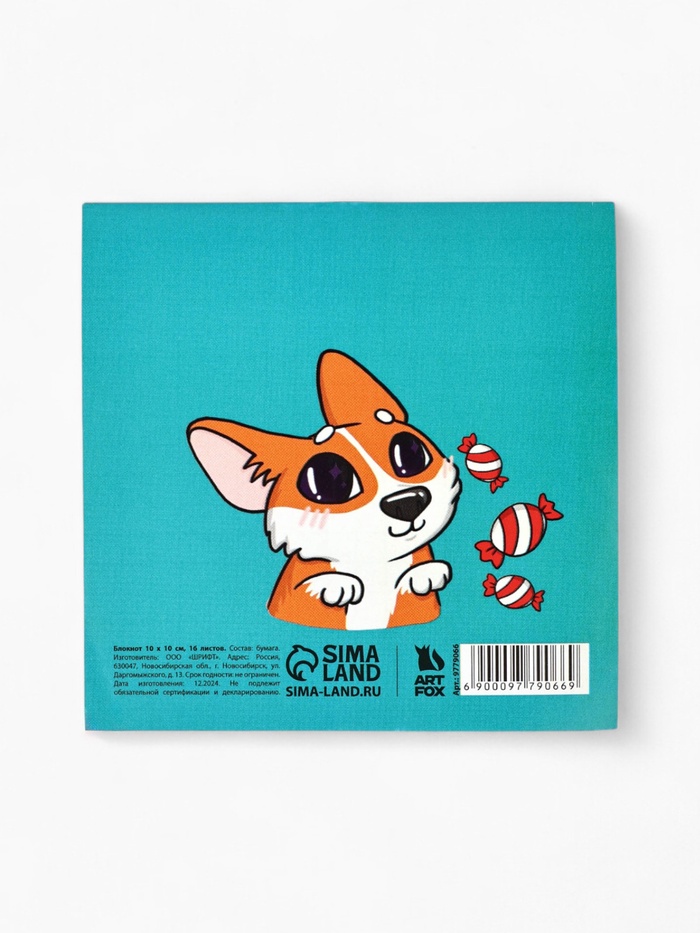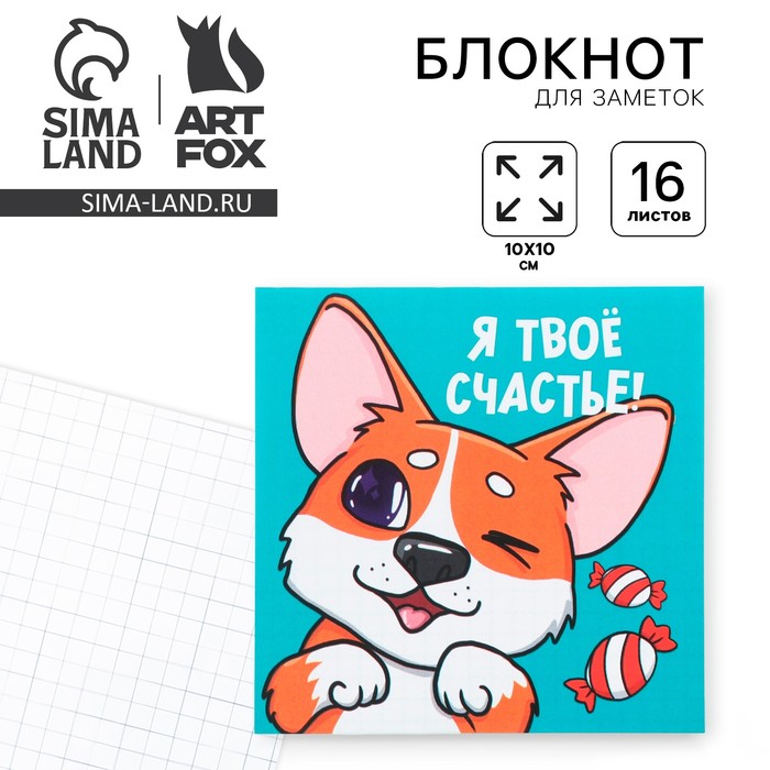 Блокнот 10×10, 16 л. в клетку «Корги» — Характеристики