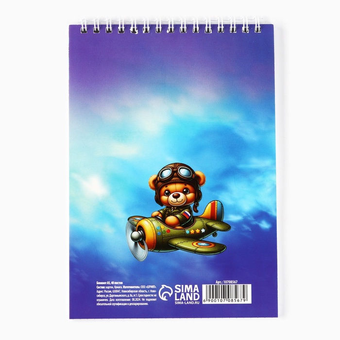 Блокнот А5, 40 л. на гребне, обложка картон «Отважному защитнику» — Характеристики