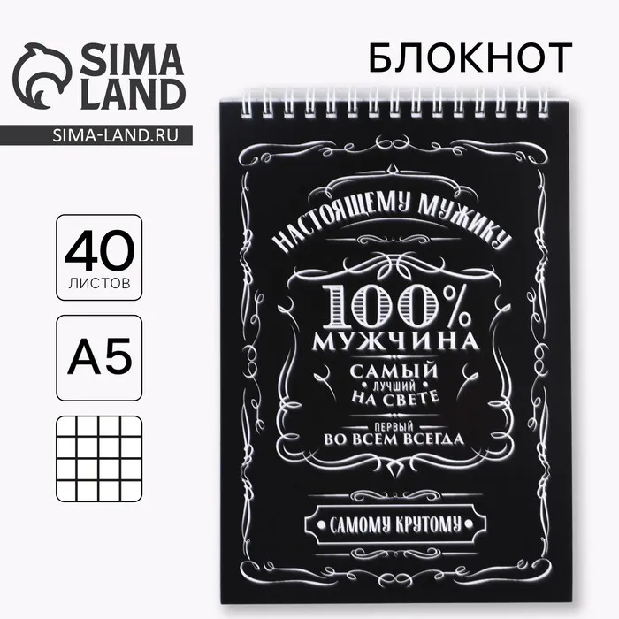 Блокнот А5, 40 л. на гребне в клетку «100% мужчина» — Характеристики