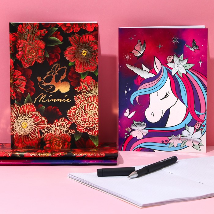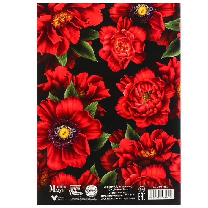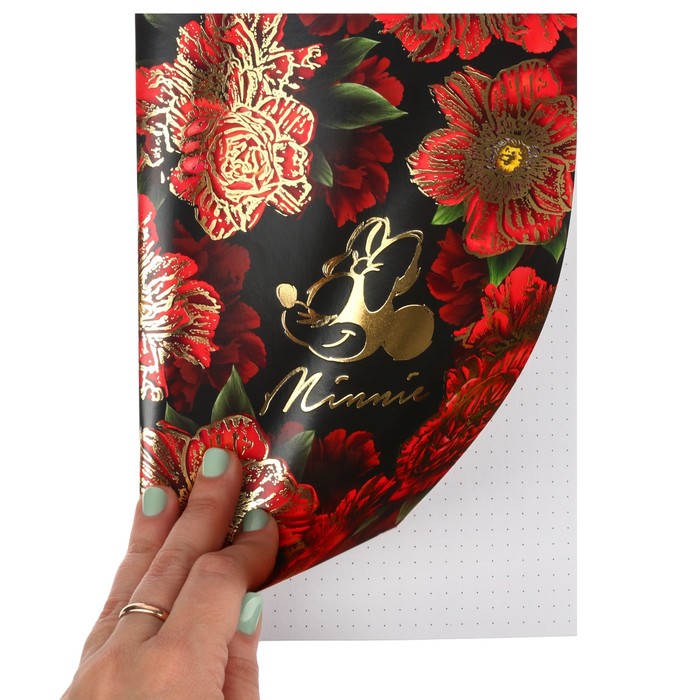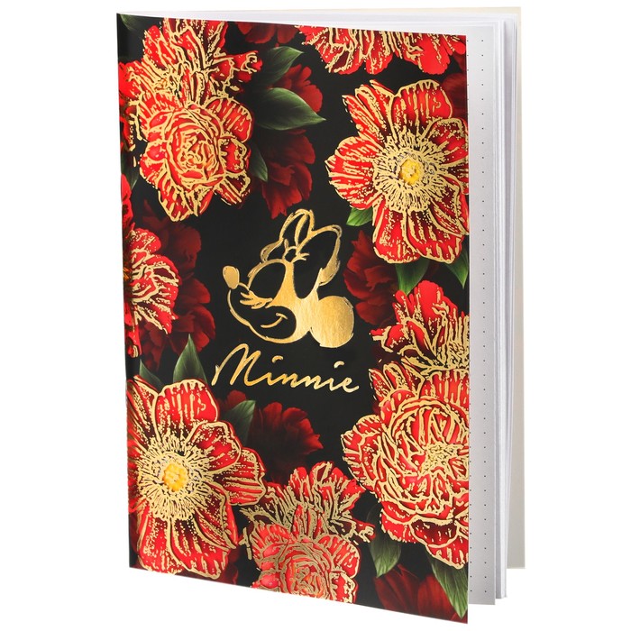 Блокнот А5, 40 листов, на скрепке, в точку, золотое тиснение, «Минни Маус» — Характеристики