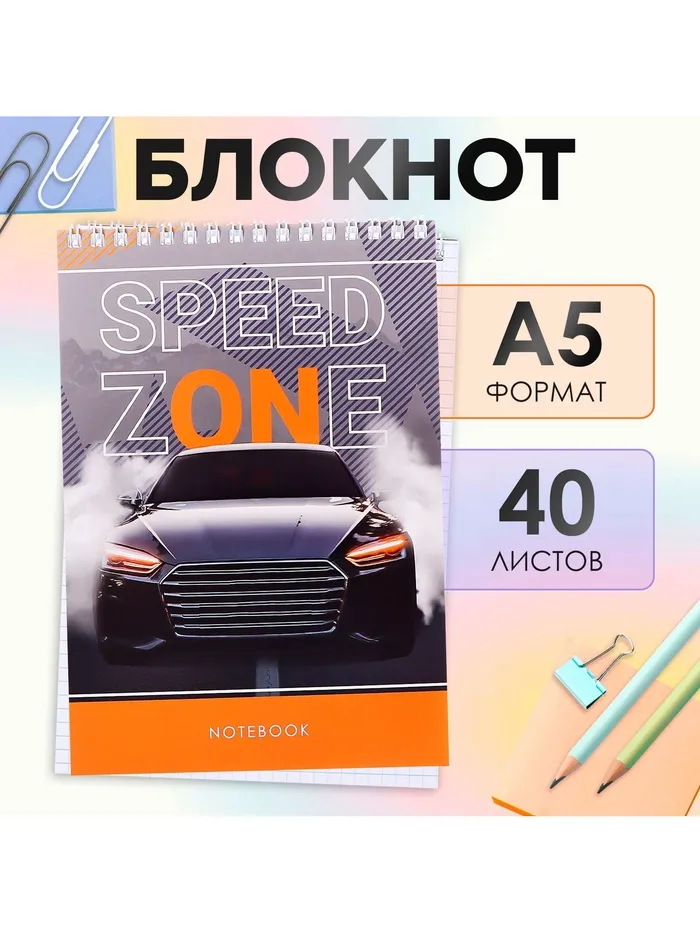 Блокнот А5, 40 листов в клетку на гребне "Авто", обложка мелованный картон, блок офсет — Характеристики