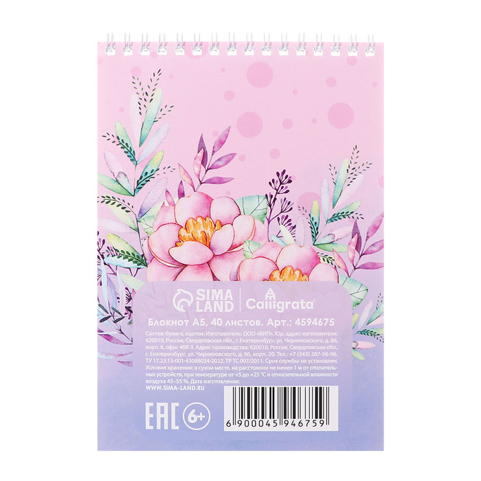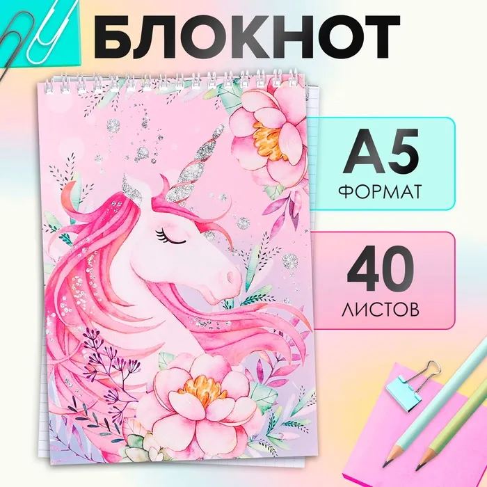 Блокнот А5, 40 листов в клетку на гребне "Единорог", обложка мелованный картон, блок офсет — Характеристики