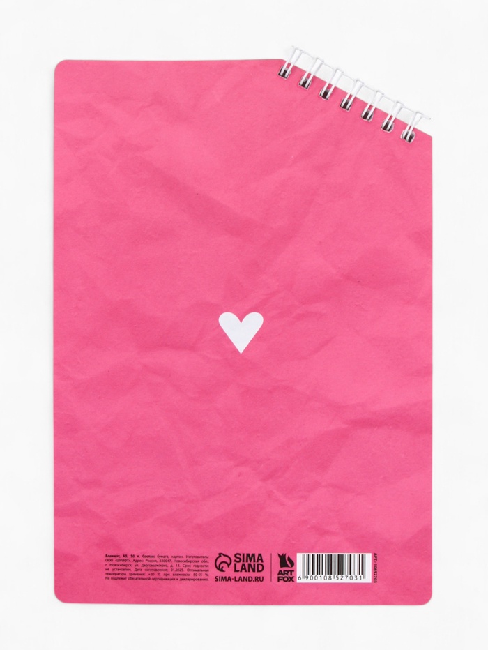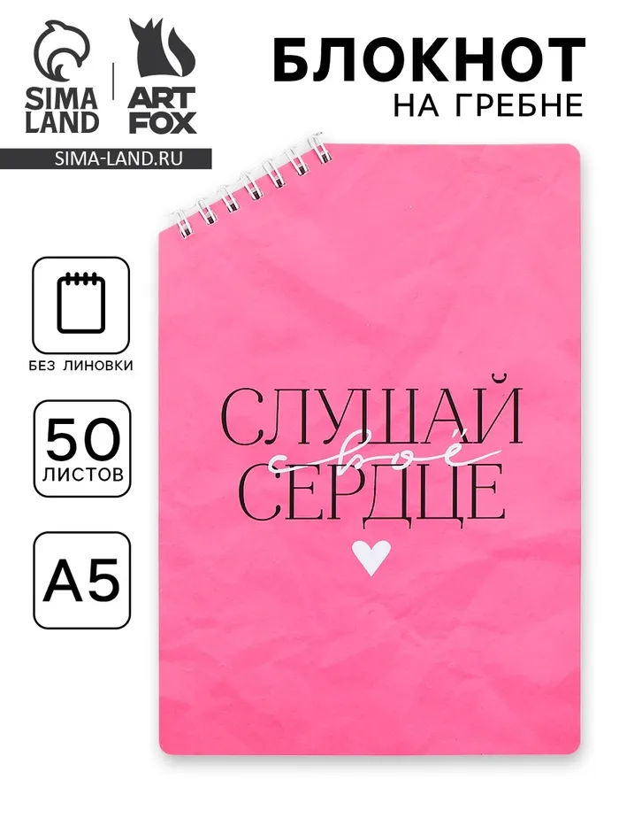 Блокнот А5, 50 л. На скошенном гребне. Белые листы. "Слушай сердце" — Характеристики