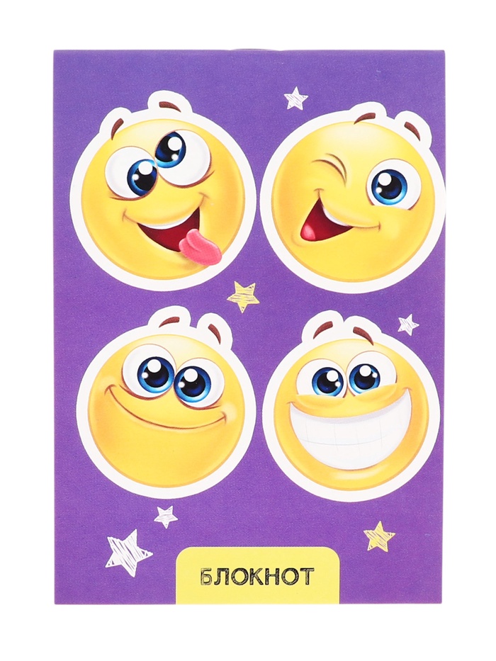 Блокнот А6, 24 листа в клетку на скрепке «Смайлики», обложка мелованный картон, МИКС — Характеристики