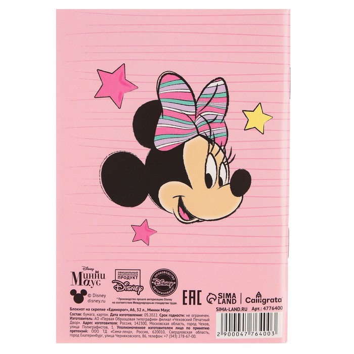 Блокнот А6 32 л на скрепке «Минни Маус», Единорог — Характеристики