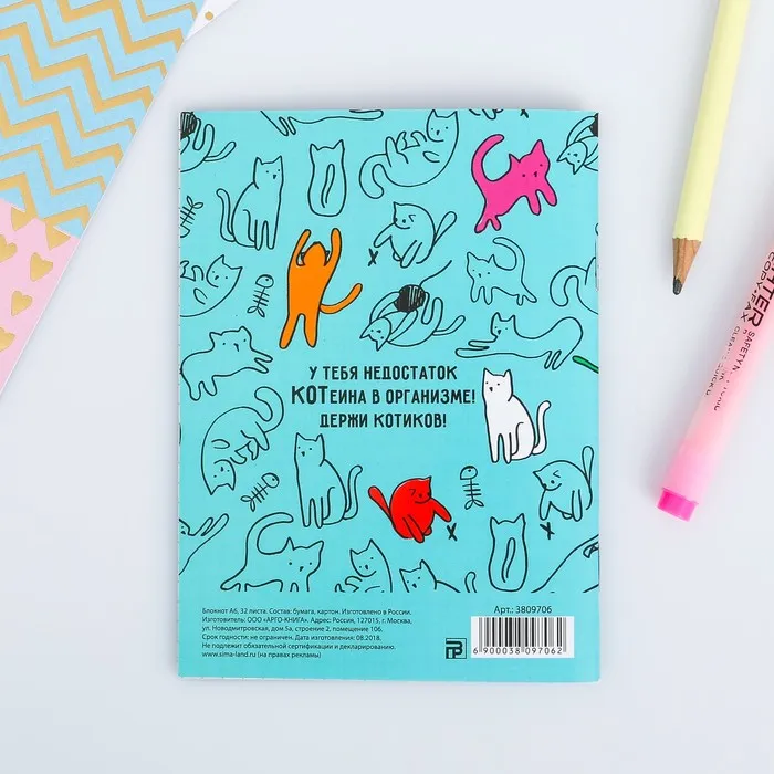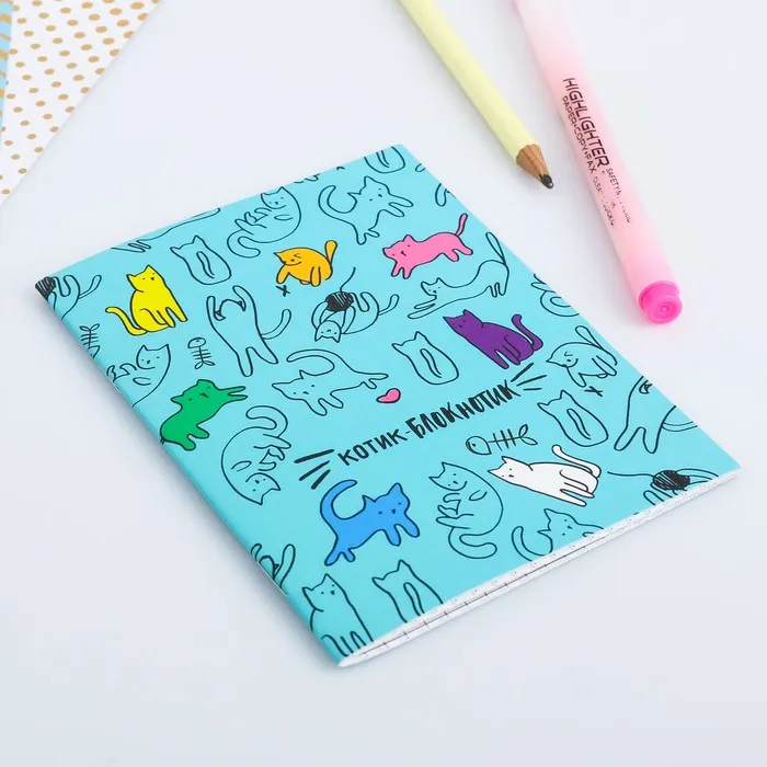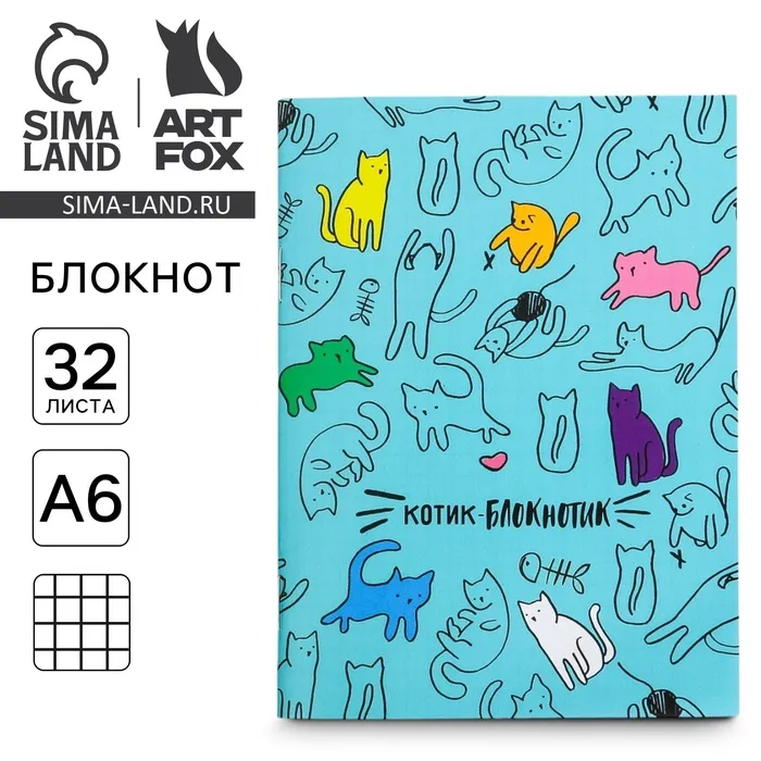 Блокнот А6, 32 л на скрепке, в клетку «Котик-блокнотик» — Характеристики