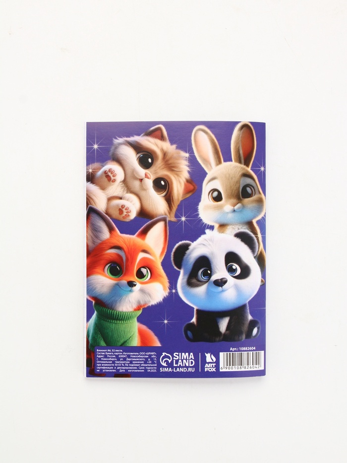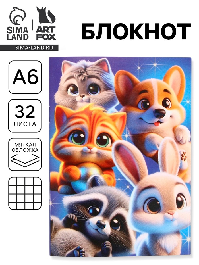 Блокнот А6, 32 л на скрепке, в клетку «Пушистики» — Характеристики