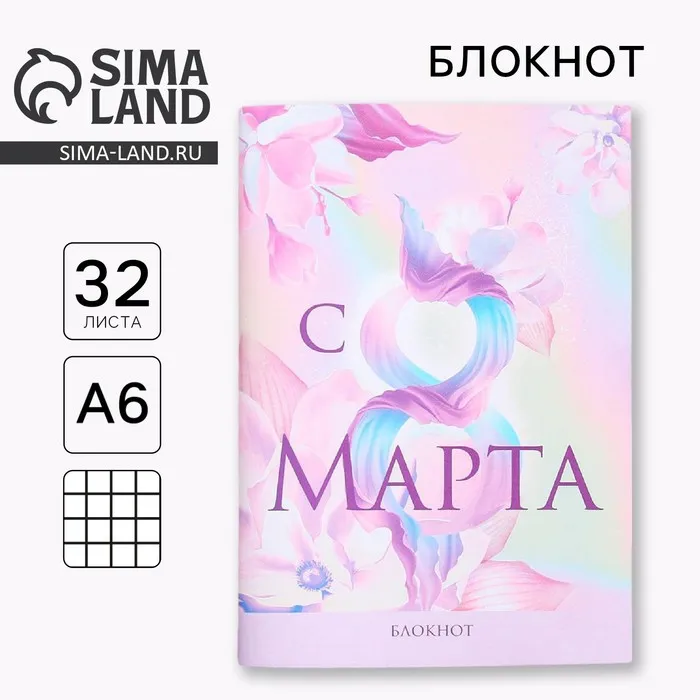 Блокнот А6, 32 л. В клетку «С 8 Марта розовый» — Характеристики
