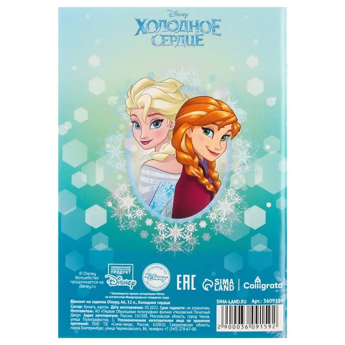 Блокнот А6, 32 листа, на скрепке «Холодное сердце», Disney — Характеристики