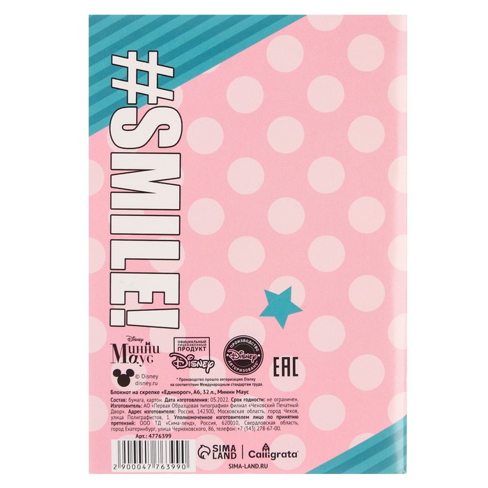Блокнот А6, 32 листа, на скрепке «Минни Маус» — Характеристики