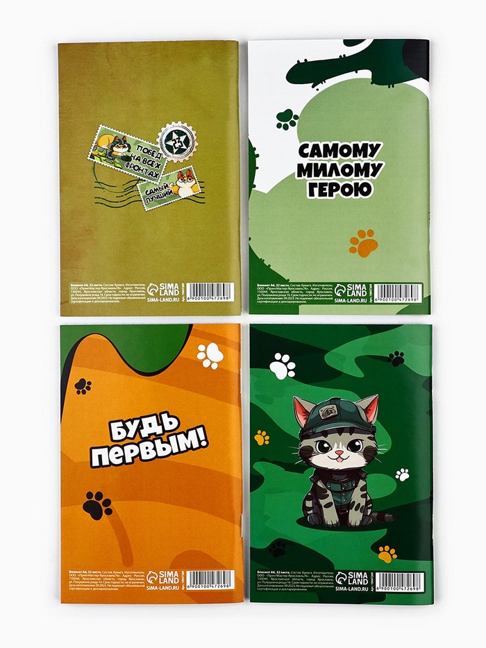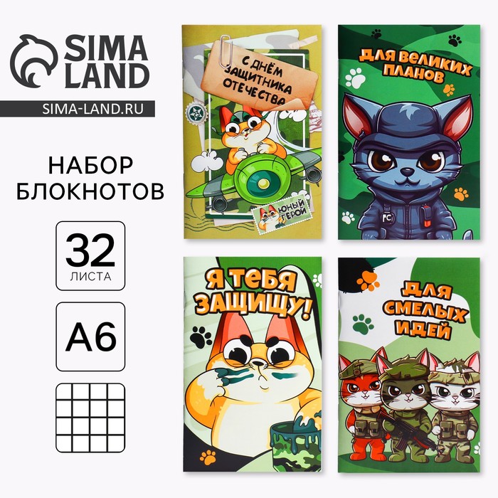 Блокнот А6, 32 листа, набор из 4 шт. в пакете «Котик защитник. 23 февраля» — Характеристики