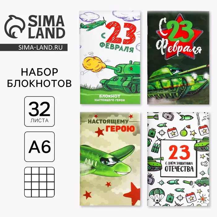 Блокнот А6, 32 листа, набор из 4 шт. в пакете «С 23 Февраля» — Характеристики