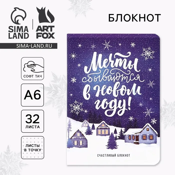 Блокнот, А6, 32 листа, софт тач «Мечты сбываются в Новом году» — Характеристики