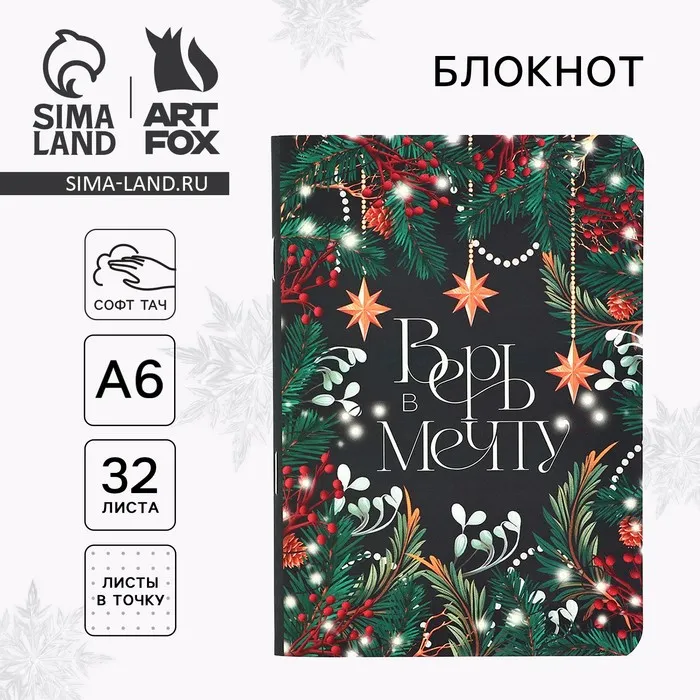 Блокнот, А6, 32 листа, софт тач «Верь в мечту» — Характеристики