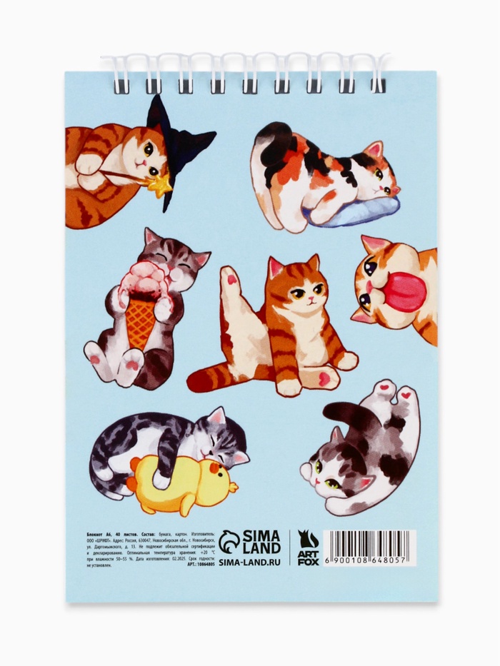 Блокнот А6, 40 л. на гребне, мягкая обложка «Кото-блокнот» — Характеристики