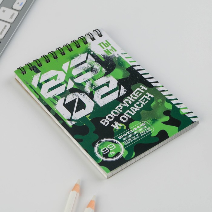 Блокнот А6, 40 листов на гребне, в клетку «23 февраля вооружен и опасен» — Характеристики