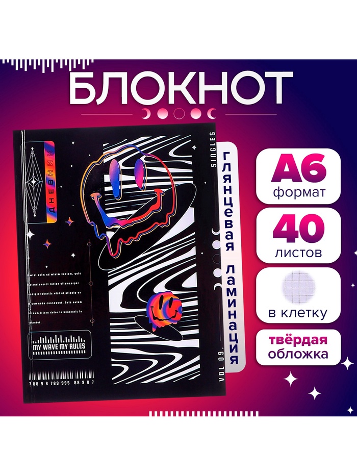 Блокнот А6, 40 листов в клетку "Аниме,", твёрдая обложка, глянцевая ламинация, блок офсет — Характеристики