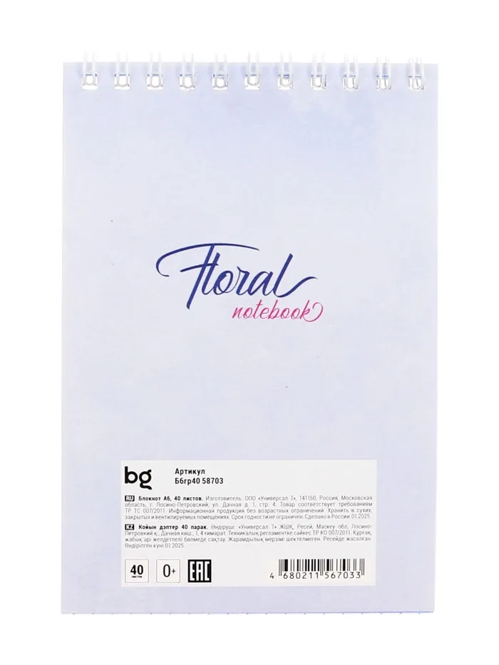 Блокнот А6, 40 листов в клетку, Floral notebook, на гребне, МИКС — Характеристики