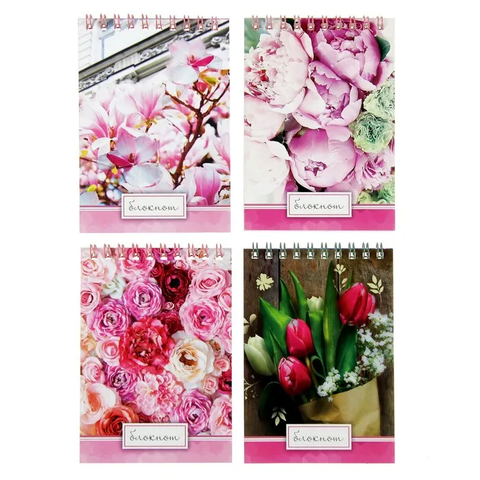 Блокнот А6, 40 листов в клетку на гребне "Цветы", обложка мелованный картон, МИКС — Характеристики
