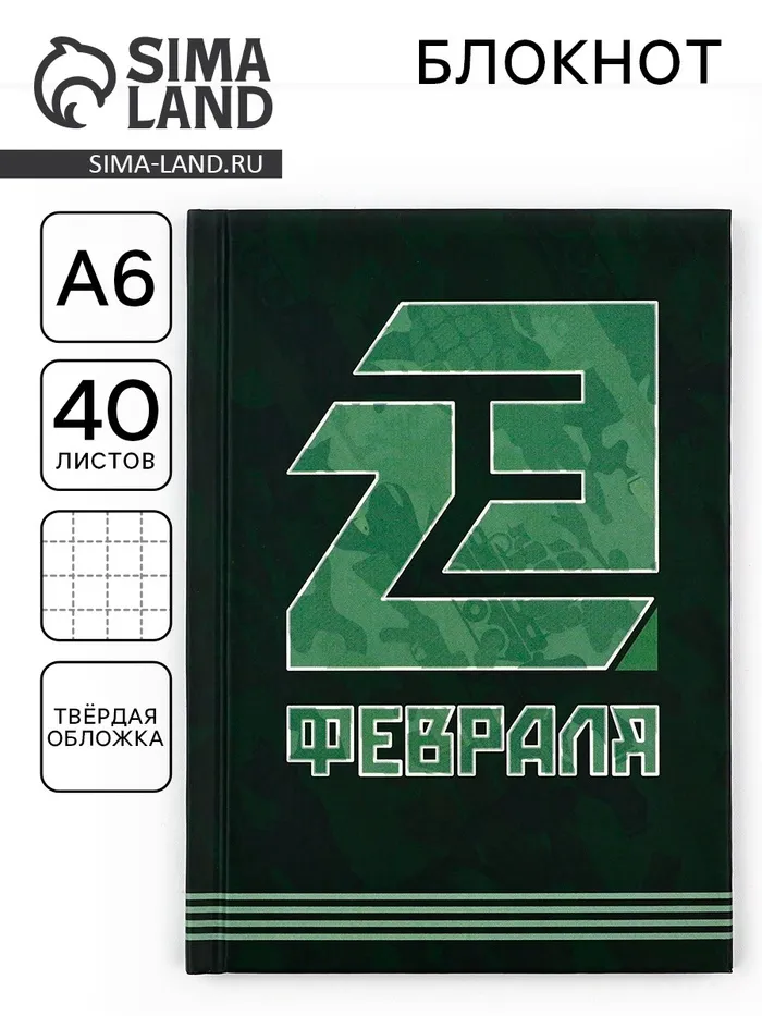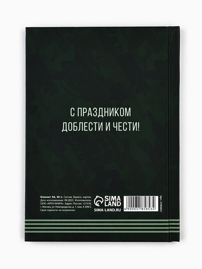 Блокнот А6, 40 листов в твердой обложке «23 февраля» — Характеристики