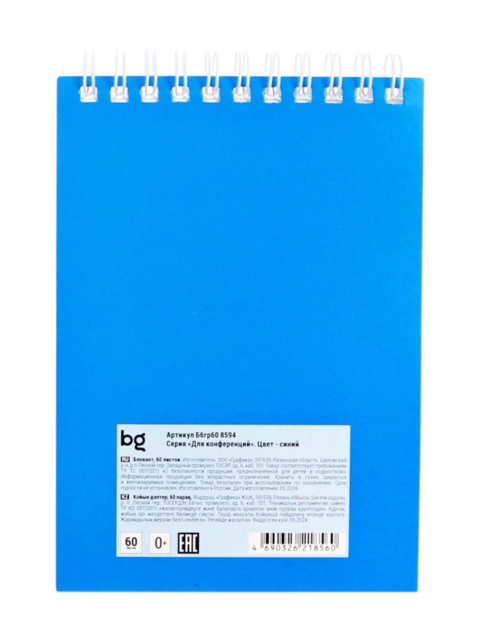 Блокнот А6, 60 листов в клетку, «Для конференций», на гребне, синий — Характеристики