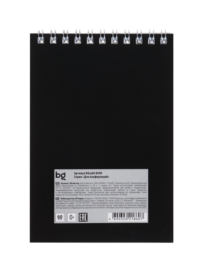 Блокнот А6 60 листов, в клетку, на гребне, для конференций, черный, обложка мелованный картон — Характеристики