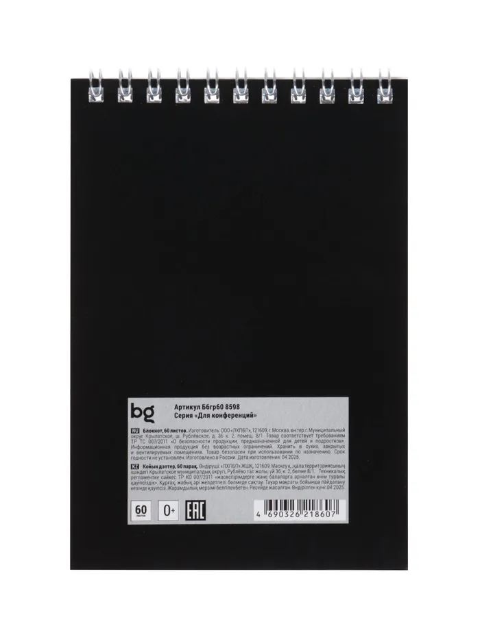 - Обложка из мелованного картона: мягкая, но прочная, защищает страницы от повреждений и загрязнений. Черный цвет придает деловой вид.