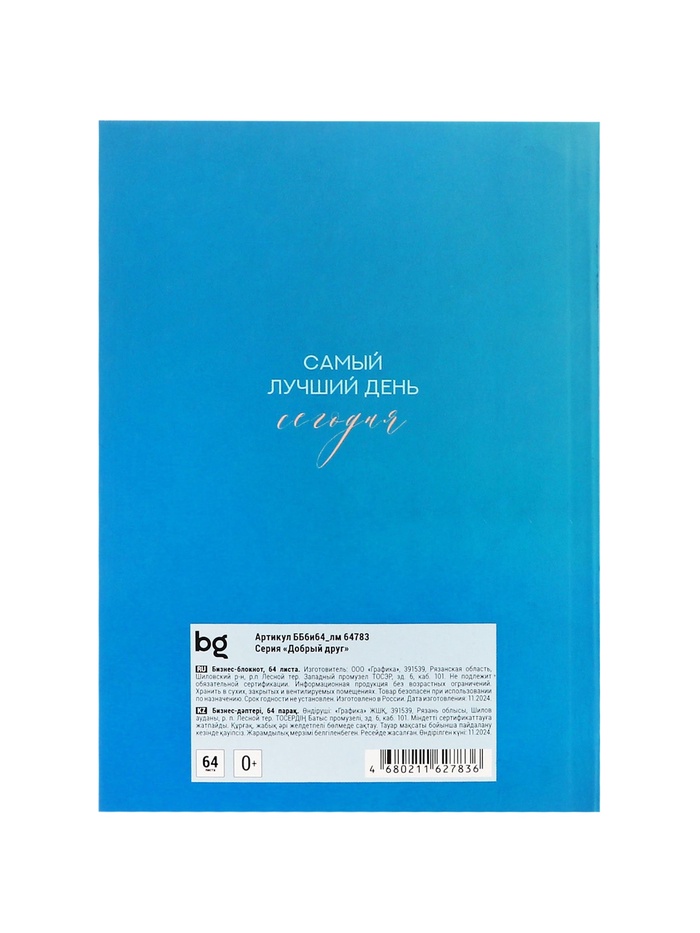Блокнот А6, 64 листа в клетку «Добрый друг», твёрдая обложка, матовая ламинация — Характеристики
