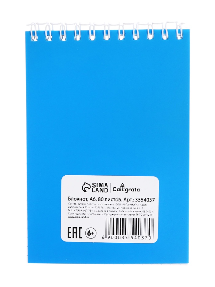 Блокнот А6, 80 листов в клетку на гребне Calligrata, пластиковая обложка, синий — Характеристики