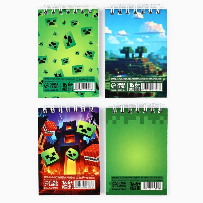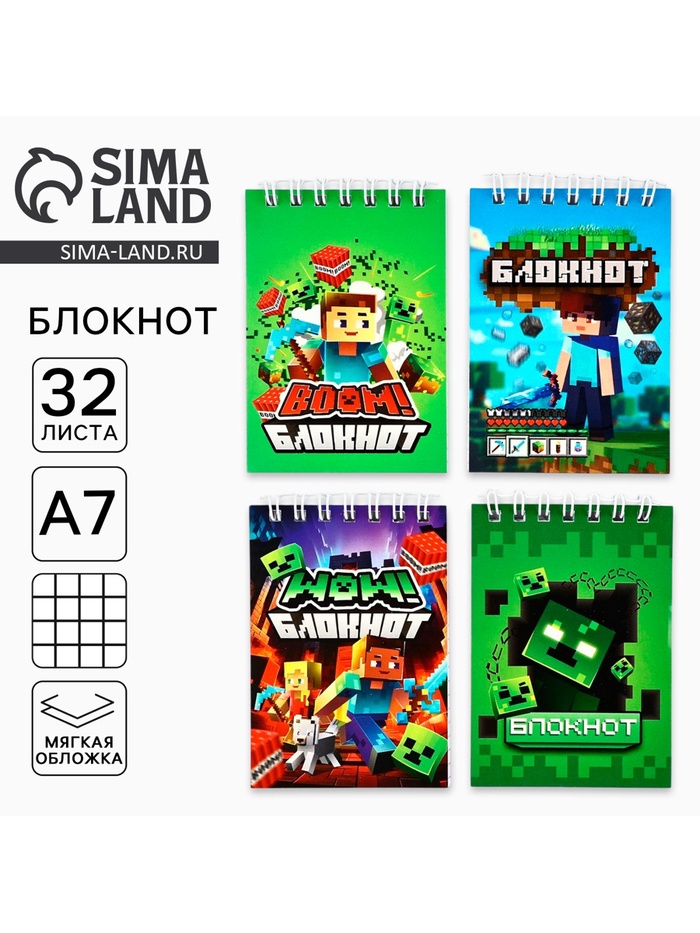 Блокнот А7, 32 л., на гребне в клетку, мелованная обложка «Пиксели» МИКС — Характеристики