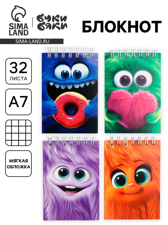 Блокнот А7, 32 листа «Монстрики» МИКС — Характеристики