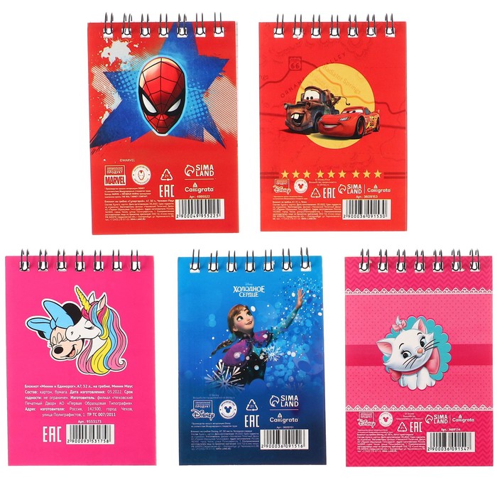 Блокнот А7, 32 листа, на гребне, 5 видов, МИКС — Характеристики