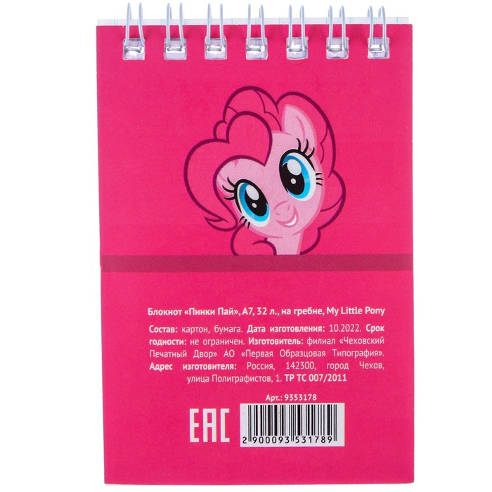 Блокнот А7, 32 листа, на гребне, My Little Pony — Характеристики