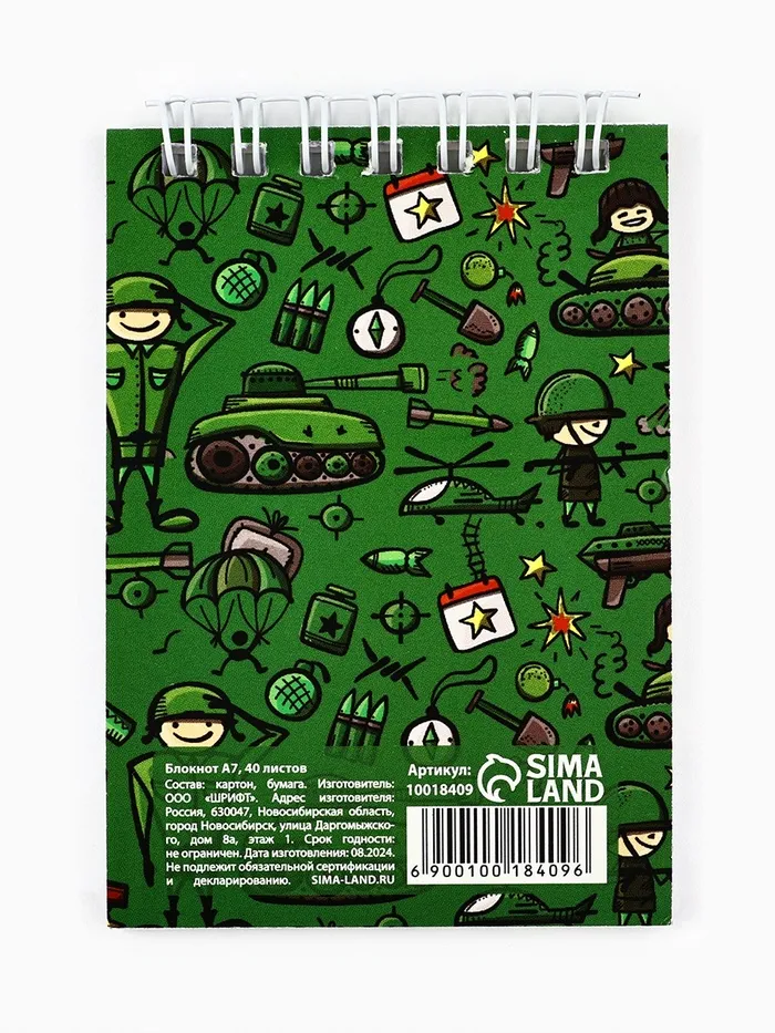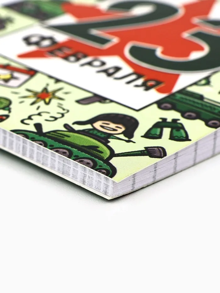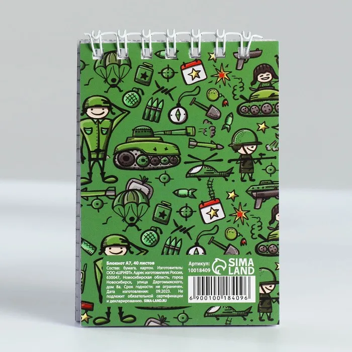 Блокнот А7, 40 листов в мягкой обложке, на гребне «С 23 февраля. Паттерн» — Характеристики